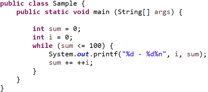 | 100개의 실행문을 하지 않고도 3줄로 작성 가능하다. 출력 : 1~100까지의 합은 5050입니다. |