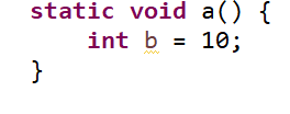 | 메소드 a에서 변수 b는 a메소드 밖에서는 영향을 주지 않는다. |